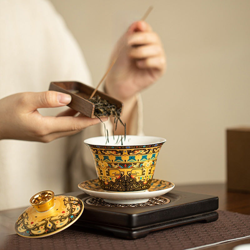 · Inspired by traditional Ru Kiln craftsmanship, the glaze reveals soft crackles and antique charm · Adorned with the “Nine Peaches” motif, symbolizing longevity, abundance, and auspicious blessings · Graceful silhouette and lightweight form, tailored for refined daily use by women · Ideal for...