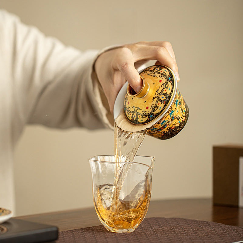 · Glazed in classic Ru Kiln style with soft crackles and a celadon hue, evoking ancient elegance · Adorned with gold-painted "You Fu" character, symbolizing blessings and good fortune · Equipped with a built-in tea infuser and lid, ideal for effortless daily brewing ·...