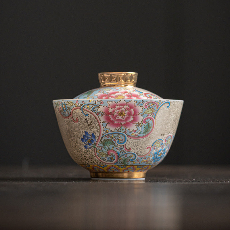 Handmade Enamel Filigree Silver Sancai Teacup - 160-170ml
