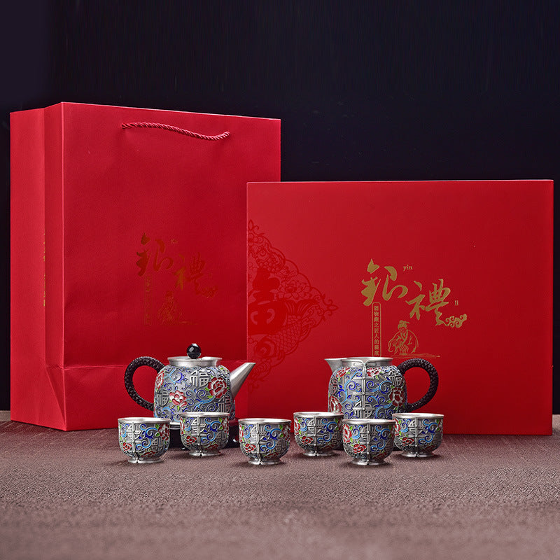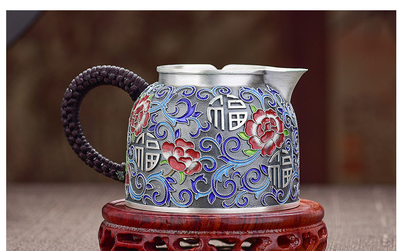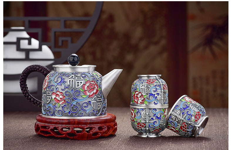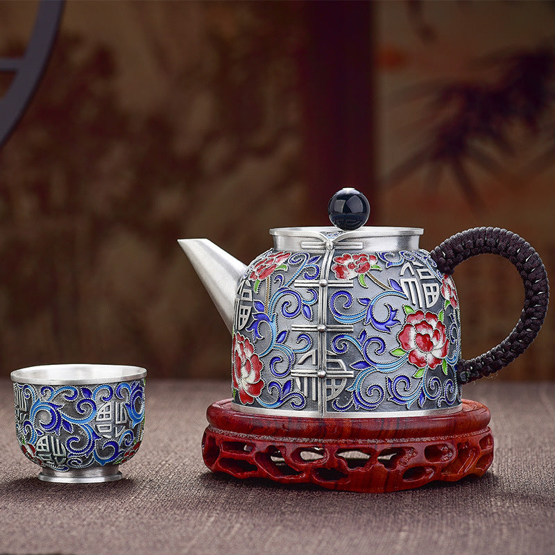 Elevate your tea experience with this exquisite Enamel Sterling Silver 999 Tea Set. Handcrafted by skilled artisans, each piece combines the pure brilliance of 999 fine silver with intricate enamel craftsmanship. Designed for Gongfu tea ceremonies, this luxury set not only enhances the aroma and flavor of tea but also reflects the elegance of Eastern artistry. Perfect for collectors, connoisseurs, or as an extraordinary gift.