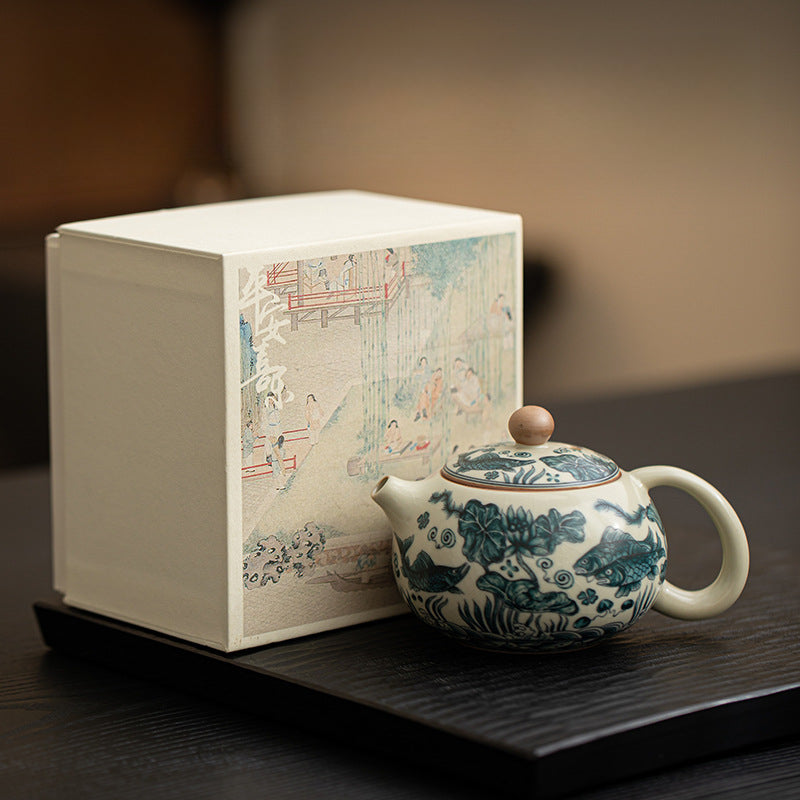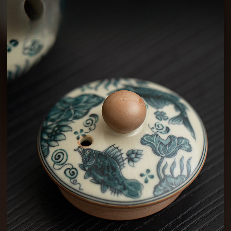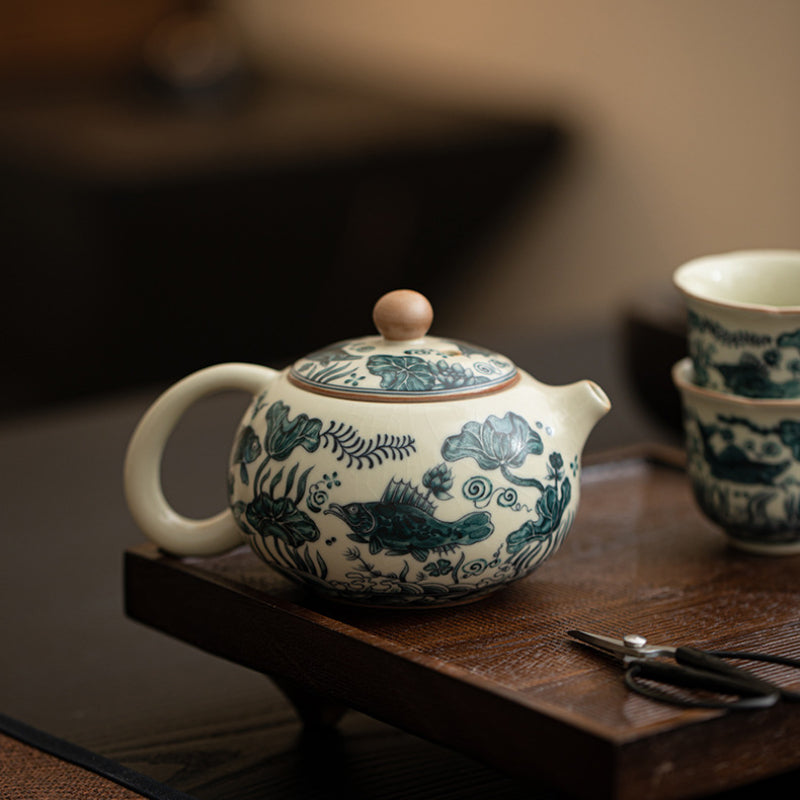 · Inspired by Ru Kiln Style – Featuring a soft celadon glaze and fish & waterweed motif