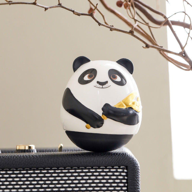 Wobbling Panda with Bamboo – Ceramic Desk Ornament for Home, Office or Car Decor